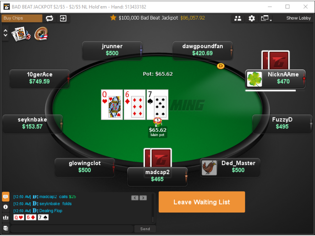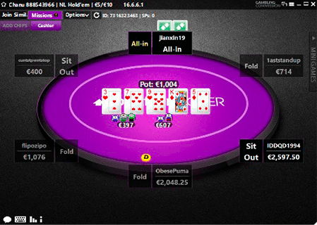 Только за кэш-столами рассматриваемой сети в среднем собирается по 7-8 тысяч человек, а в пиковое время это значение повышается до 10 000. Больше всего игры на низких лимитах – с NL5 до NL25 собирается по 20-30 полных столов на каждый лимит. Средние лимиты (от NL50 до NL 200) собирают обычно не меньше 10 столов на каждый лимит. Также есть игра и по самым высоким ставкам (NL1000) – от 2 до 5 полных столов. Быстрый покер включает только 4 лимита, однако на каждом из них достаточно много подключений в любое время.