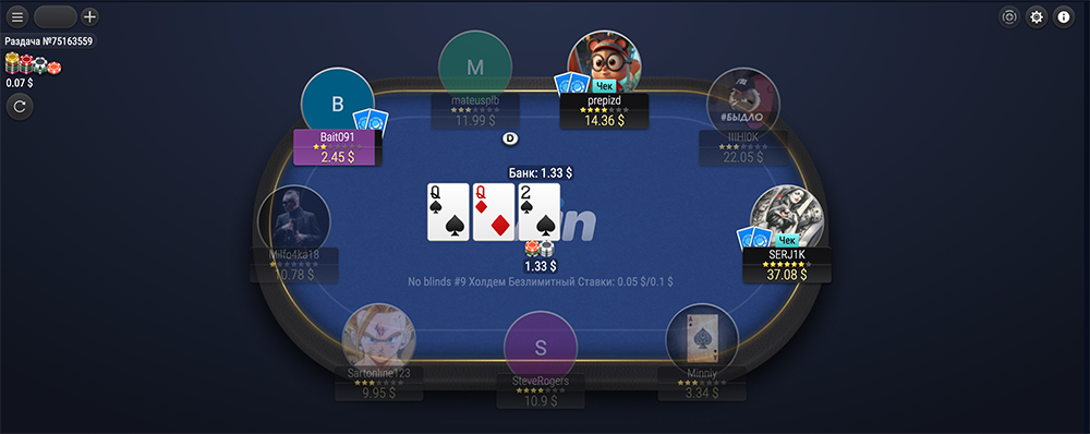С помощью покерного клиента можно одновременно играть за несколькими столами, располагая их плиткой, либо каскадом. В верхней ленте осуществляется переключение между столами. Есть возможность развернуть все столы на весь экран, и на передний план будут выходить те столы, где нужно принимать решение.