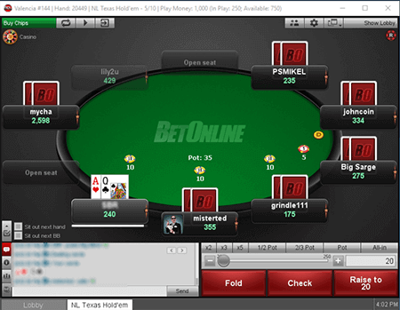 BetOnline Poker является румом канадской сети Chico Poker Network в которой могут играть жители США. Таким образом, поле в данном руме довольно слабое