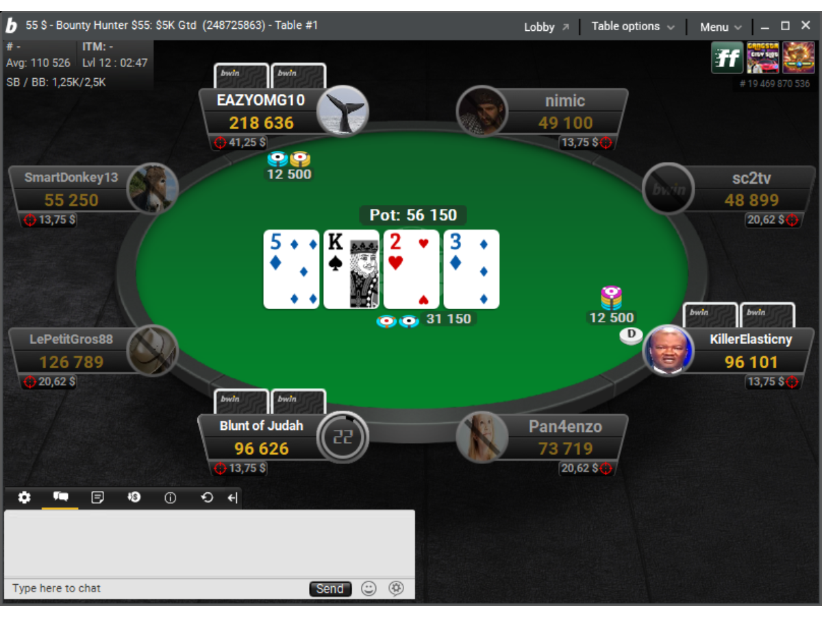 Bwin Poker — относится к числу крупнейших покерных румов с отличным кеш трафиком и слабым полем.