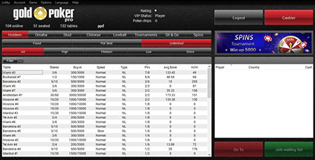 Gold Poker Pro - покер-рум из Израиля. Согласно законам, жители Израиля могут играть только в резервациях. Таким образом, вашими оппонентами будут только любители покера из Израиля, чей уровень игры довольно низкий.