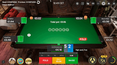 В Unibet Poker  есть свой формат пуш-фолд столов — Banzai (посадка за столы с 10ББ). Всего в нем 3 лимита NL1 (бб — 10 центов), NL5 (бб — 50 центов), NL20 (бб — 2 евро).